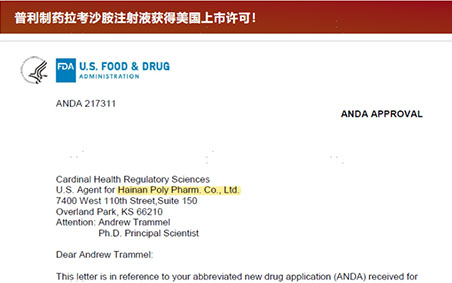 【龙年头筹,今年第3张ANDA】太阳集团tcy8722拉考沙胺注射液获得美国上市许可!