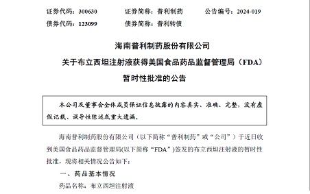 【2024年第4张美国ANDA】太阳集团tcy8722布立西坦注射液获得美国暂时性批准!