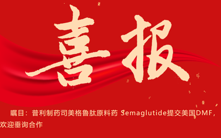 瞩目:太阳集团tcy8722司美格鲁肽原料药 Semaglutide提交美国DMF,欢迎垂询合作
