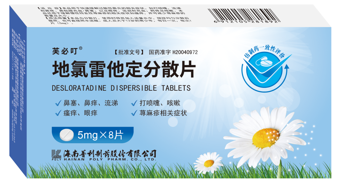 芙必叮地氯雷他定分散片,全国独家专利剂型,安全性高,无镇静作用;无食物、药物间相互作用;在水中可快速崩解,迅速起效,适合成人、老人服用;尤其适合老人、吞咽不适人群使用。