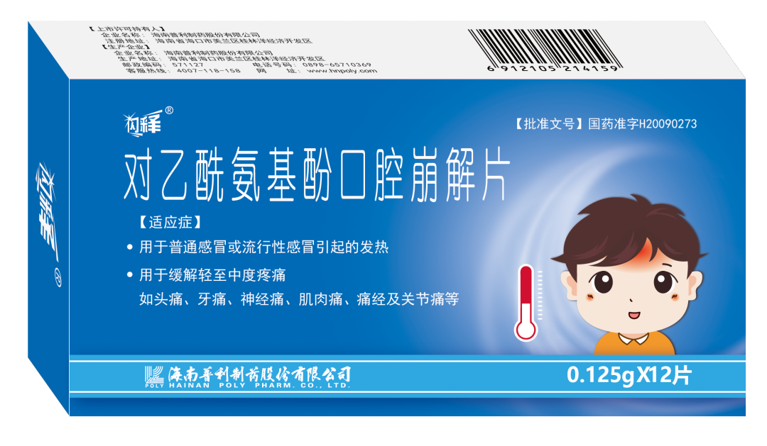 崩解快,起效快:口腔崩解片提高了对乙酰氨基酚的溶解速度,30分钟安心退烧。