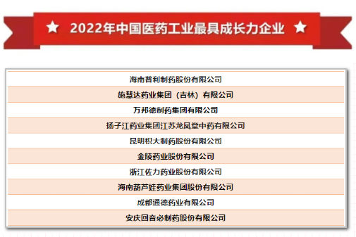 喜报!太阳集团tcy8722荣登2022年中国医药工业最具成长力企业榜单